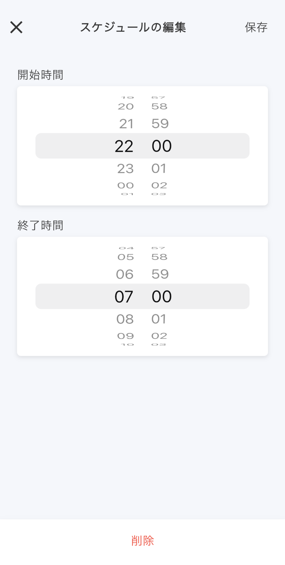 アプリで開始・終了時刻を設定するだけで、